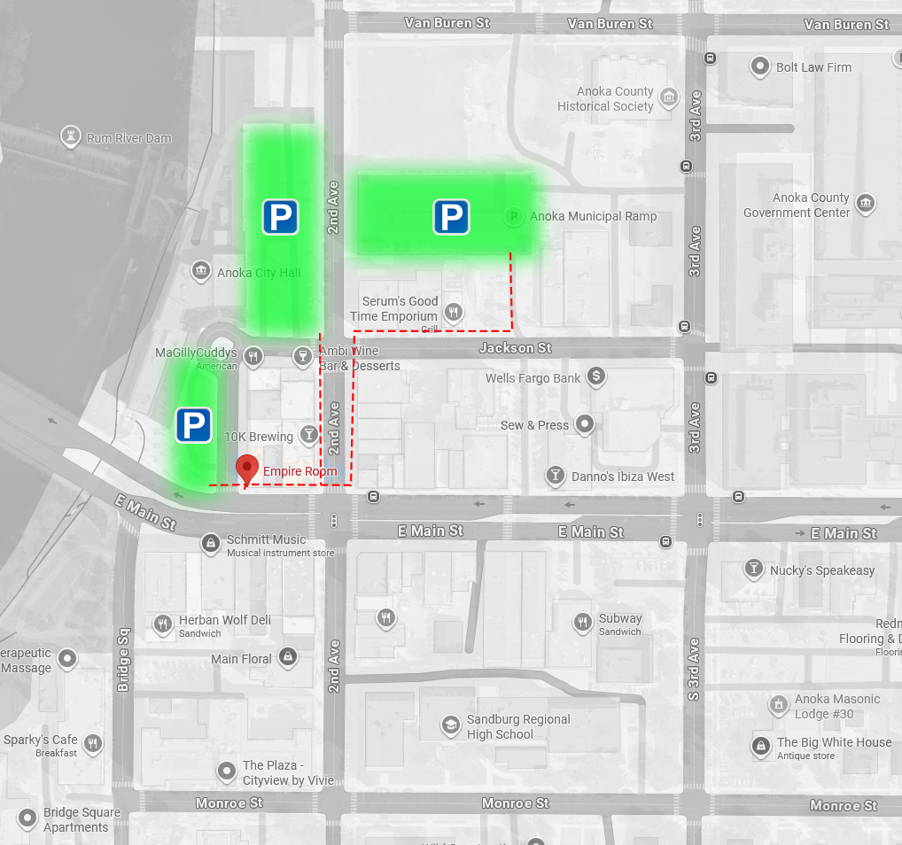 Enter through the door along Main Street marked for the Empire Room, not their main entrance.